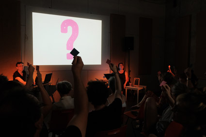 Dans cette performance, on invite le public à voter pour choisir et déterminer ce qu’il va arriver à Aimée, le personnage principal du livre.